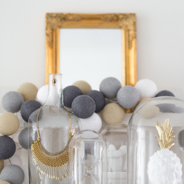 Sand/Grey bestaat uit de kleuren White, Cream, Stone en Mid Grey. Hieronder staan de hoeveelheden Cotton Balls per kleur beschreven, deze worden gebruikt Sand/Grey lichtslinger.
