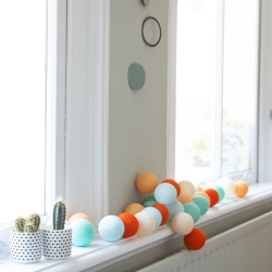 Iedere slinger is voorzien van 150 cm kabel zonder lampjes. Ook staan de lampjes 12 cm uit elkaar zodat er genoeg ruimte zit tussen de Cotton Balls.