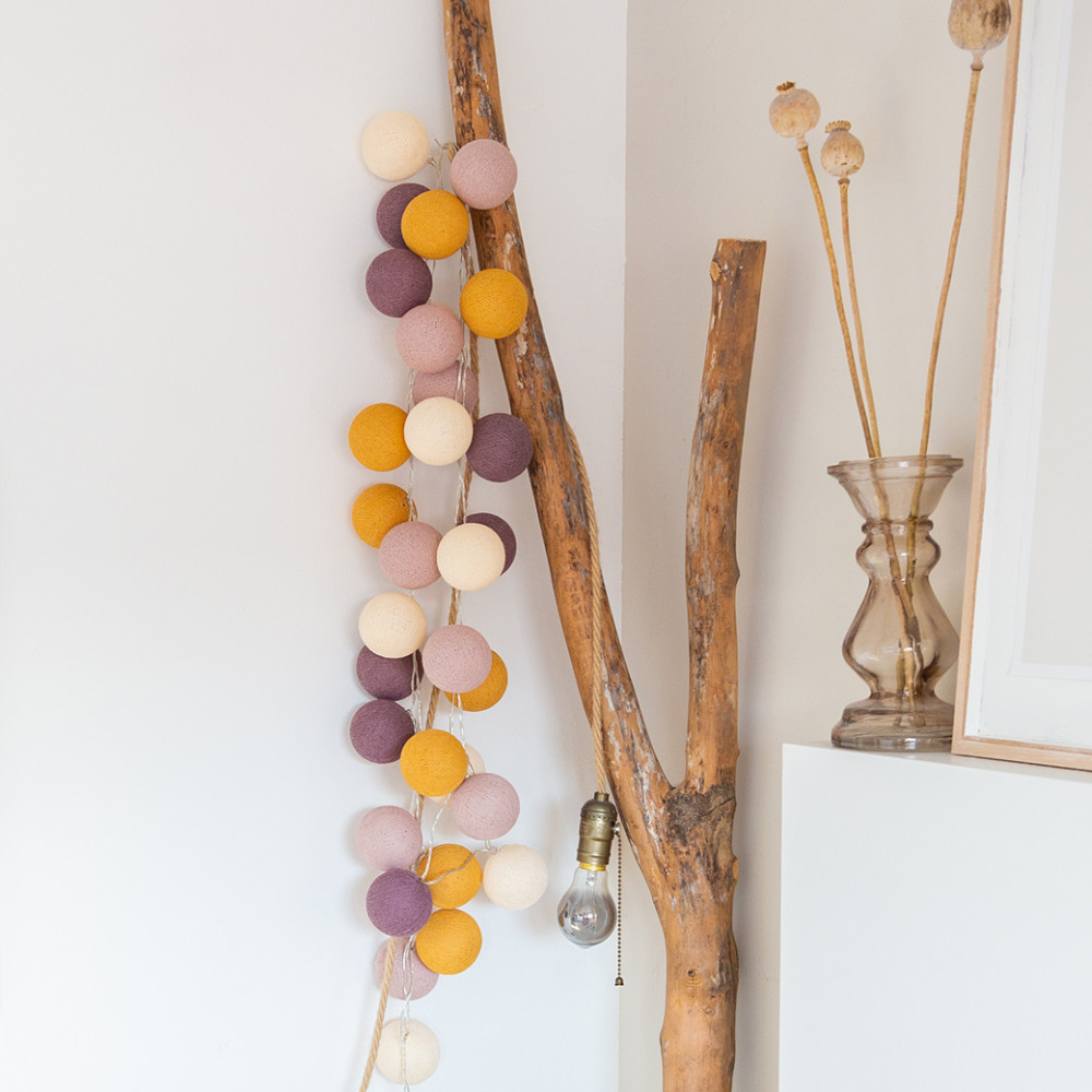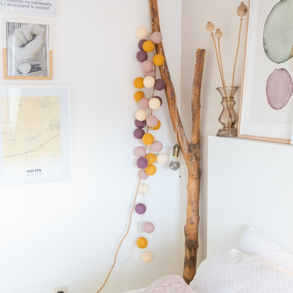 Een handgemaakte lichtslinger met het unieke Twister lichtsnoer! Deze prachtige katoenen balletjes met licht geeft sfeer aan elk interieur.