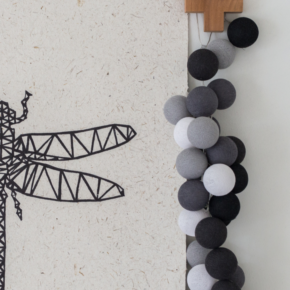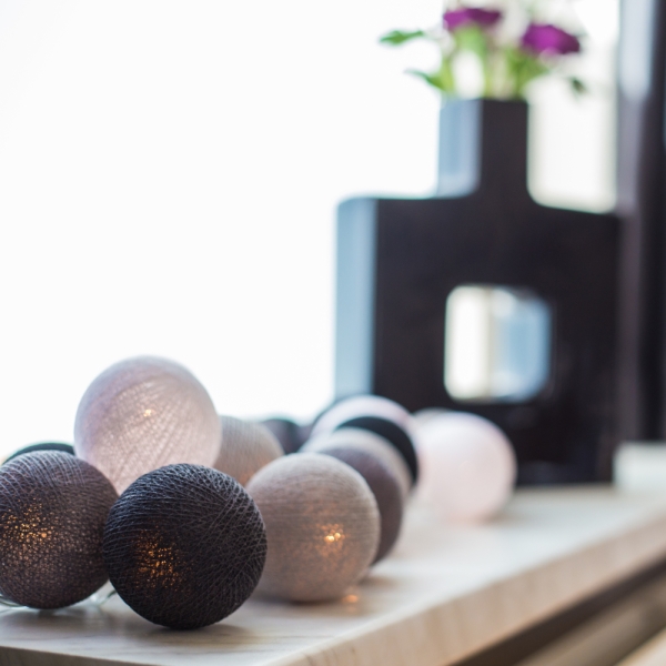 Een handgemaakte lichtslinger met het unieke Twister lichtsnoer! Deze prachtige katoenen balletjes met licht geeft sfeer aan elk interieur.