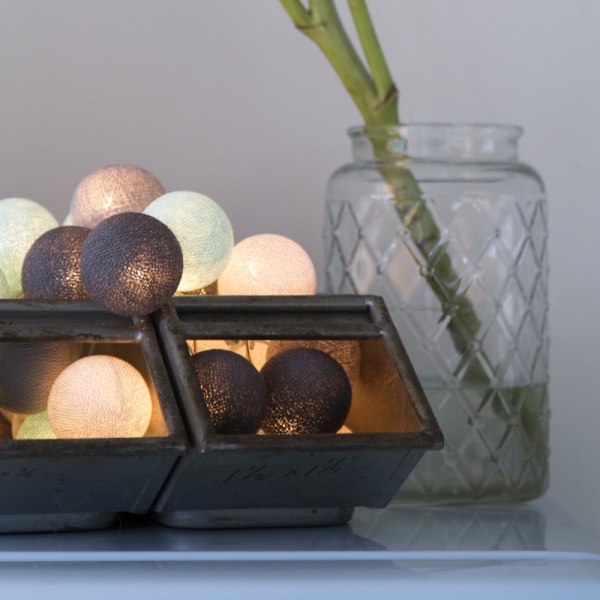 Een handgemaakte lichtslinger met het unieke Twister lichtsnoer! Deze prachtige katoenen balletjes met licht geeft sfeer aan elk interieur.