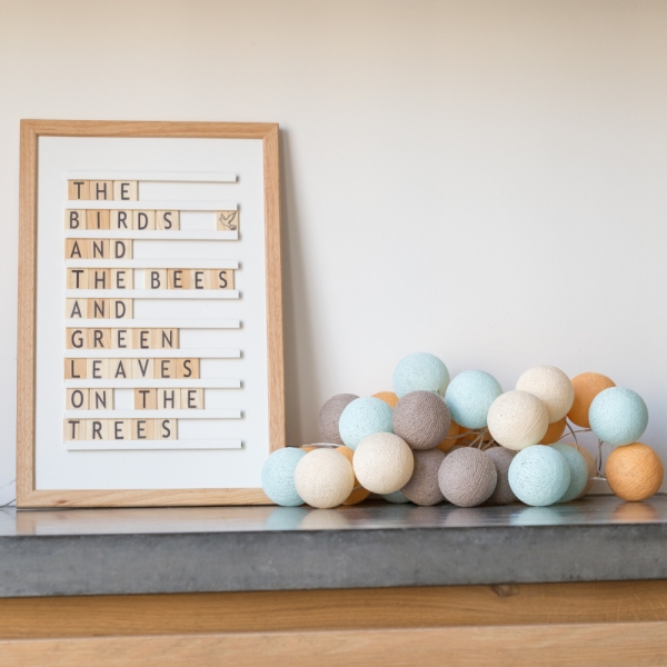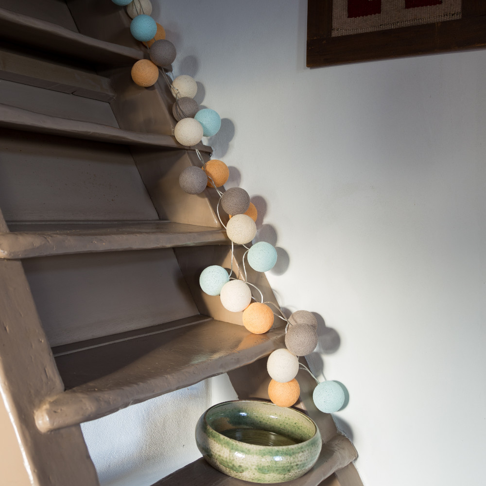 Een handgemaakte lichtslinger met het unieke Twister lichtsnoer! Deze prachtige katoenen balletjes met licht geeft sfeer aan elk interieur.