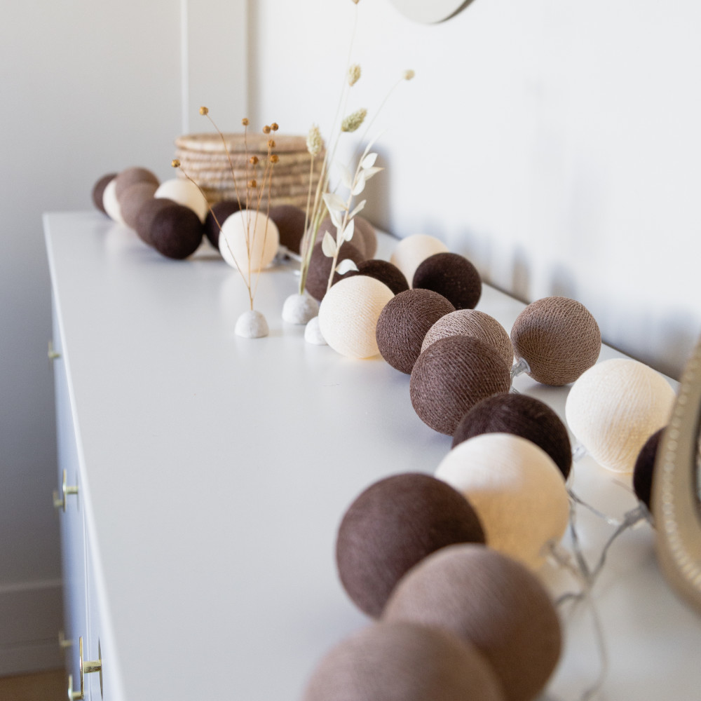 Een handgemaakte lichtslinger met het unieke Twister lichtsnoer! Deze prachtige katoenen balletjes met licht geeft sfeer aan elk interieur.