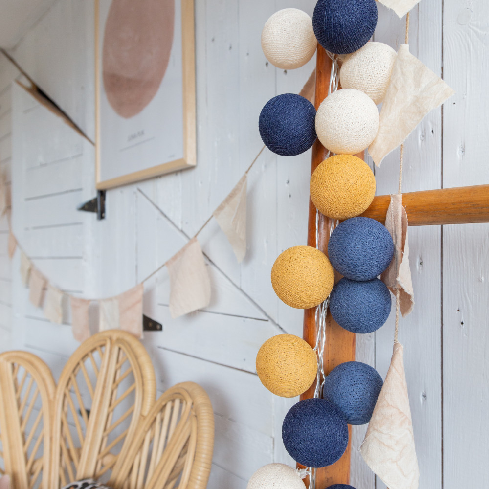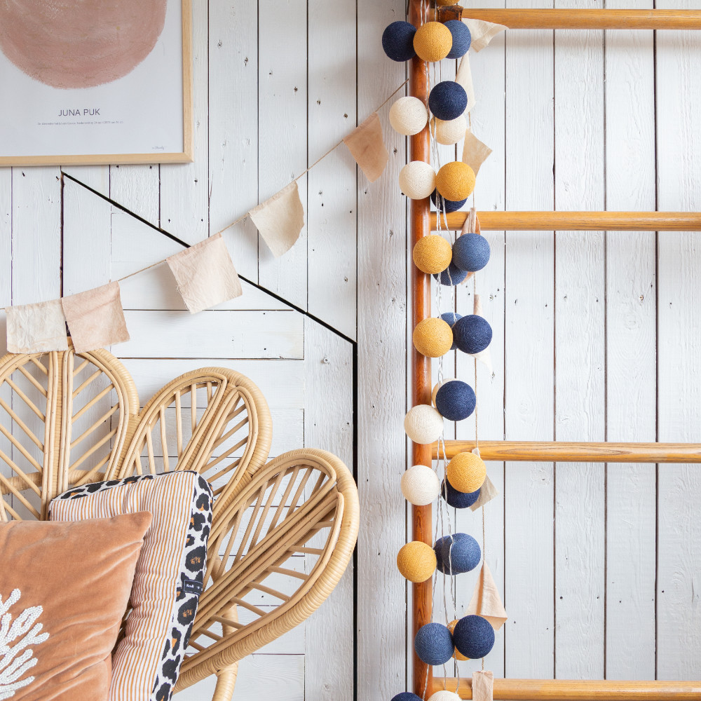 Een handgemaakte lichtslinger met het unieke Twister lichtsnoer! Deze prachtige katoenen balletjes met licht geeft sfeer aan elk interieur.