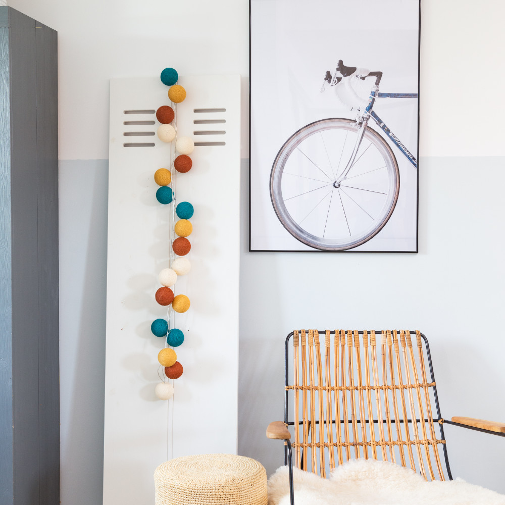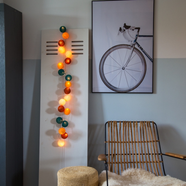 Een handgemaakte lichtslinger met het unieke Twister lichtsnoer! Deze prachtige katoenen balletjes met licht geeft sfeer aan elk interieur.