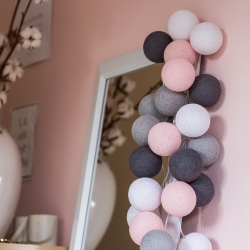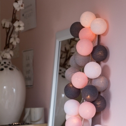Pink/Grey bestaat uit de kleuren White, Light Aqua, Stone en Mid Grey. Hieronder staan de hoeveelheden Cotton Balls per kleur beschreven, deze worden gebruikt Pink/Grey lichtslinger.