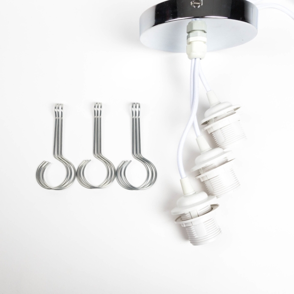 Met dit ophangsysteem (Deluxe) bevestig jij je nieuwe Cotton Ball Lights Lamp moeiteloos aan het plafond. De metalen afwerking met strijkijzerdraad zorgt voor een chique uitstraling. Onze pendels zijn voorzien van een kroonsteentje en 3 bevestigingen voor de Cotton Ball Lights Lampen. Nog geen lamp? Kijk dan ook eens bij de losse lampen.