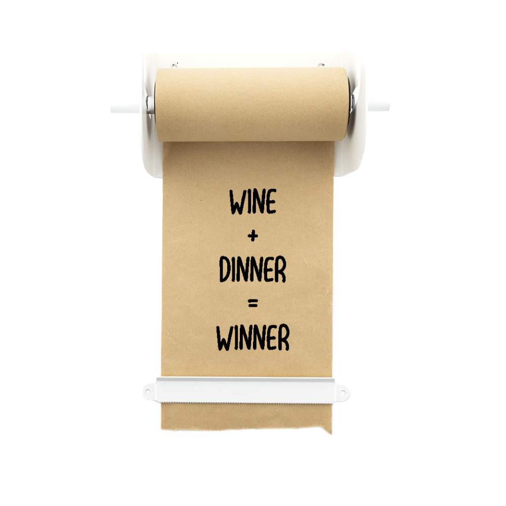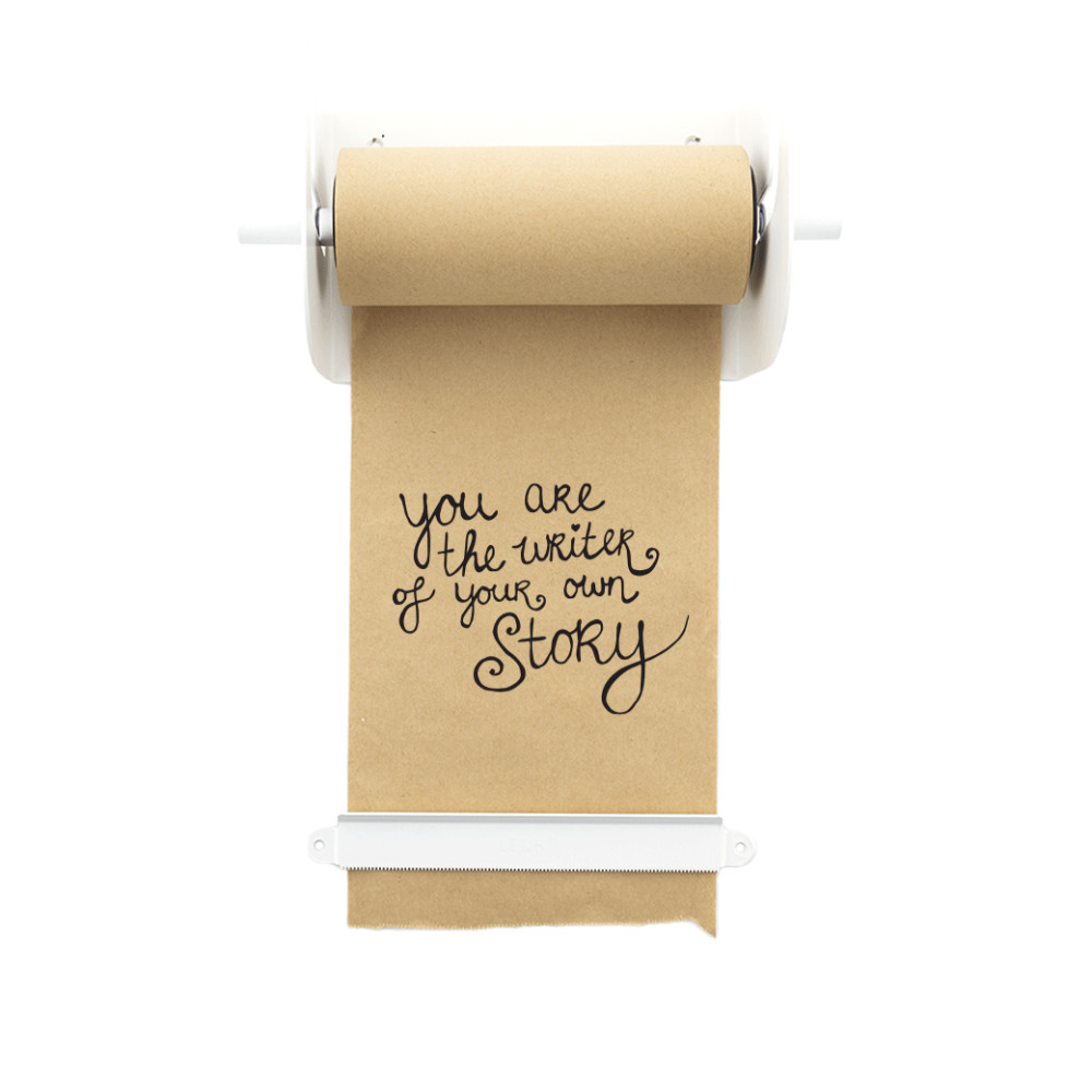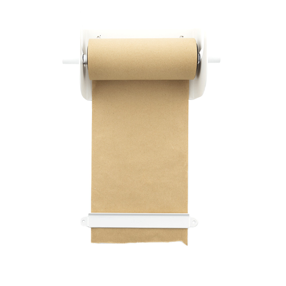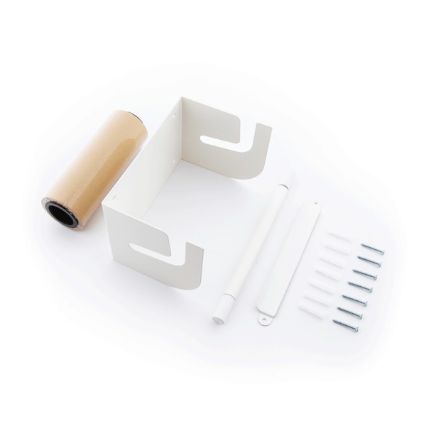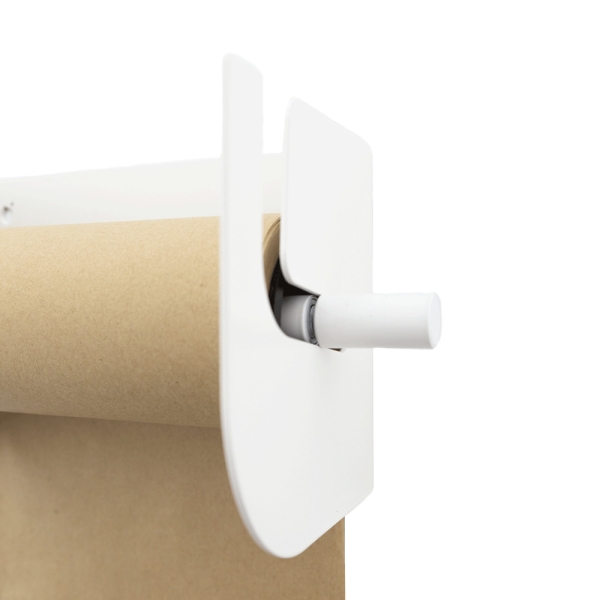 Je kunt een Refill Roll papier (50 meter) apart bijbestellen en het bevestiging materiaal om hem aan de muur te hangen zit erbij!