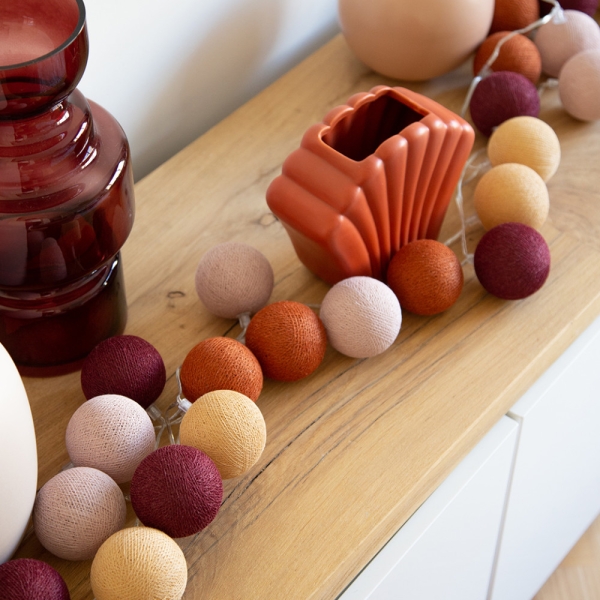 Een handgemaakte lichtslinger uit onze Fairtrade-fabriek in Thailand. Met deze warme wintercombinatie breng je een gezellige sfeer in huis.