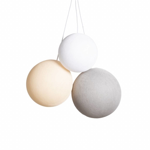 De grote Cotton Ball lampen van Cotton Ball Lights zijn beschikbaar in 4 verschillende maten S (Ø25 cm), M (Ø31 cm), L (Ø36 cm) en XL (Ø41 cm). Door ons brede scala aan kleuren hebben we voor elke ruimte een goedpassende kleur en formaat. Alle grote Cotton Ball lampen laten mooi zacht licht door. De lichtere kleuren natuurlijk wat meer dan de donkere. De grote Cotton Ball lampen geven sfeervol licht en zijn zowel aan als uit een aanwinst voor de ruimte waar je ze op wilt hangen. Normaliter moet je de grote Cotton Ball lampen zelf in vorm brengen wanneer je je pakket thuis ontvangt (klik op rode video button voor montagevideo) . Echter, als service, brengen wij je grote Cotton Ball lamp in vorm. Ideaal! Wel, hebben we hiervoor iets meer de tijd nodig om je pakket in orde te maken. Daarom moet je, wanneer je hier voor kiest, rekening houden met een levertijd van 2-3 werkdagen. Kies je formaat, kleur snoer en het type ophangsysteem. Kom je er niet aan uit? Klik dan op de maattabel en montagevideo voor extra uitleg.
